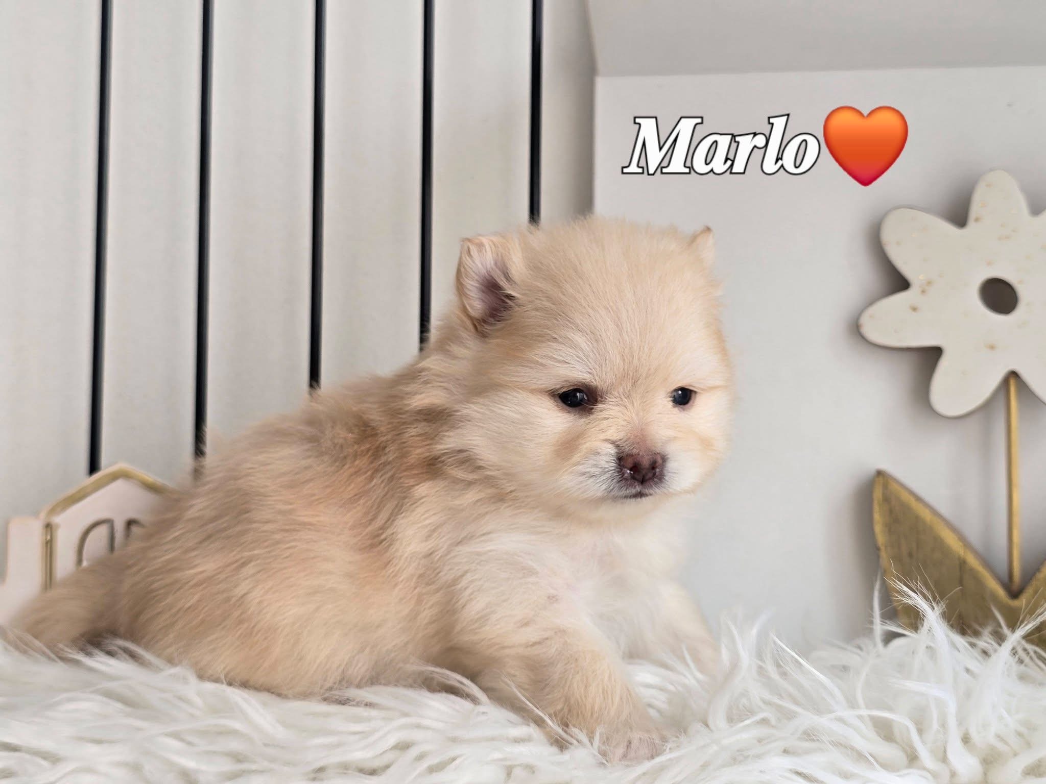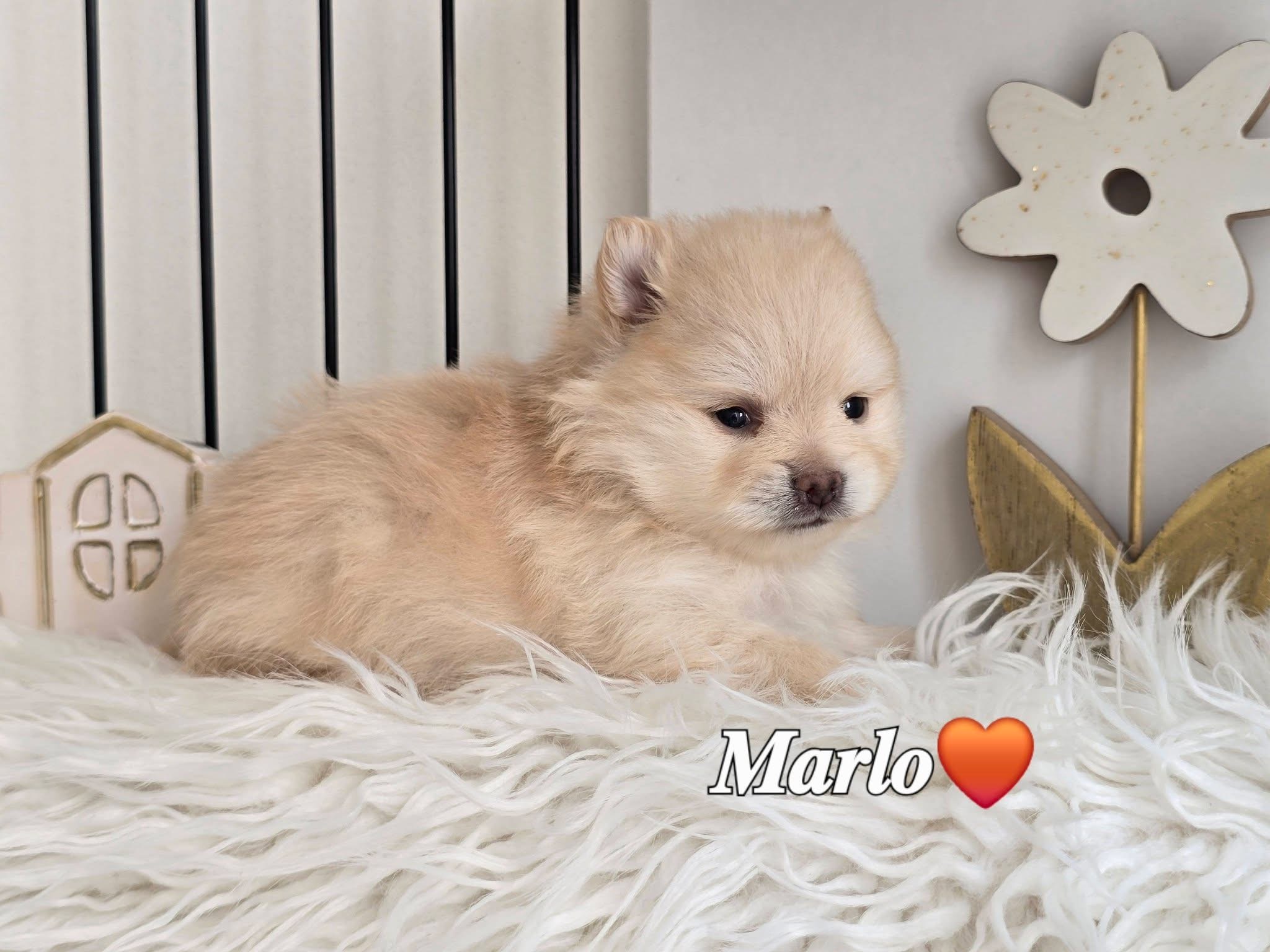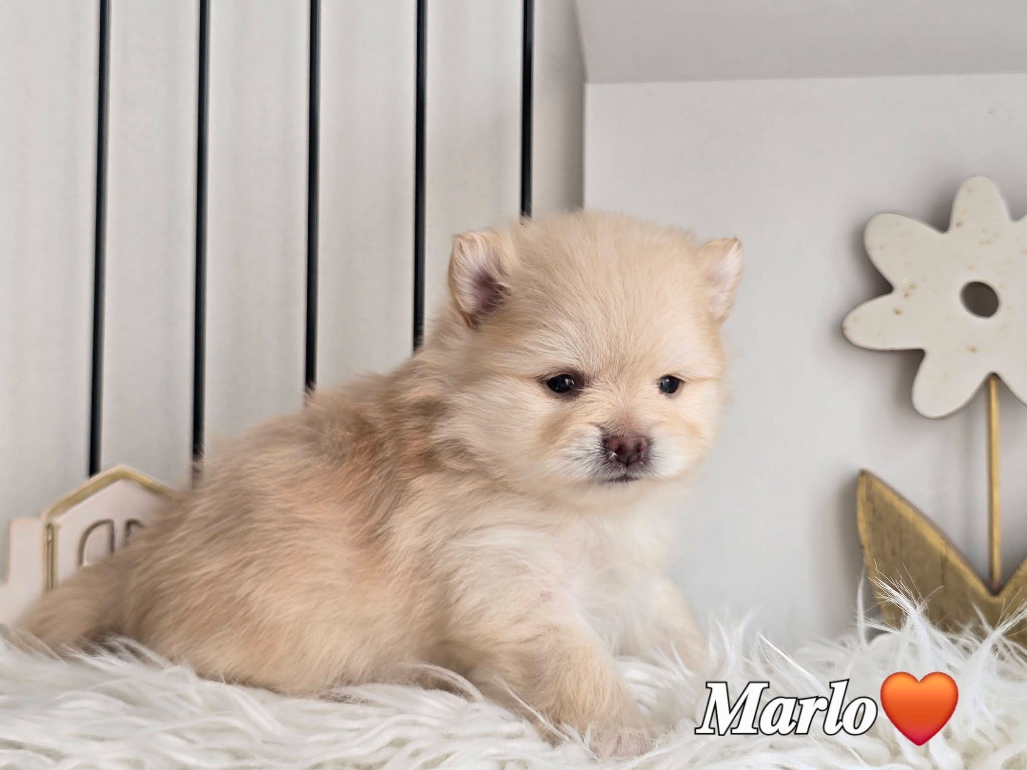 Marlo is a beautiful cream-colored Pomeranian little boy, born on February 24, 2026. With his charming looks and sweet nature, he is already winning everyone’s heart.